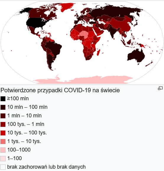 Covid-19 w 2020 roku. Całkiem spory obszar choroby (źródło: Wikipedia)